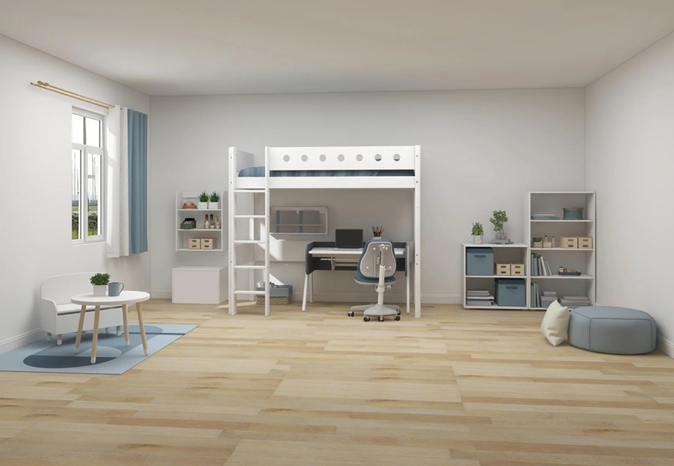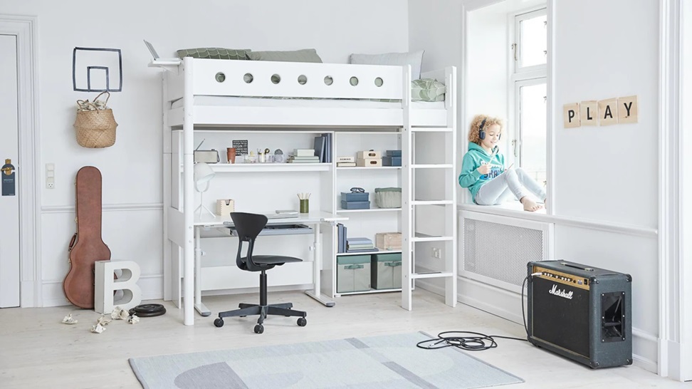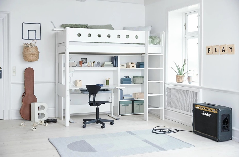 En loftsäng frigör mycket golvyta, och passar perfekt om man har ett lite mindre rum.