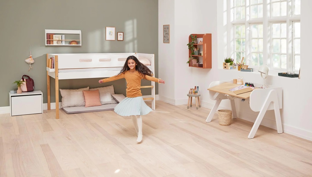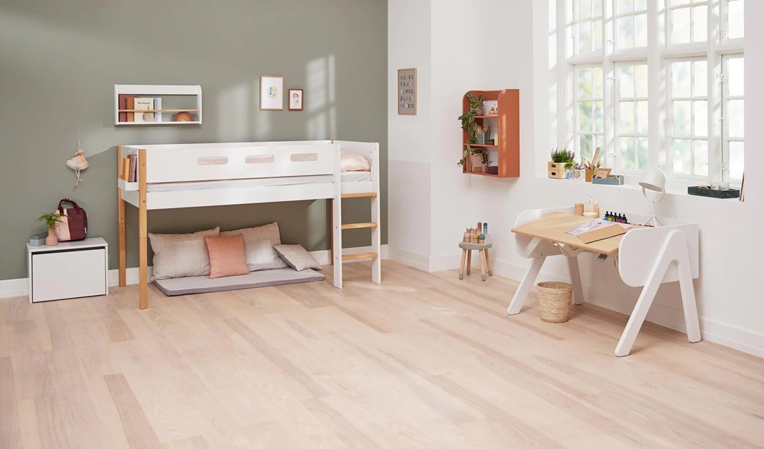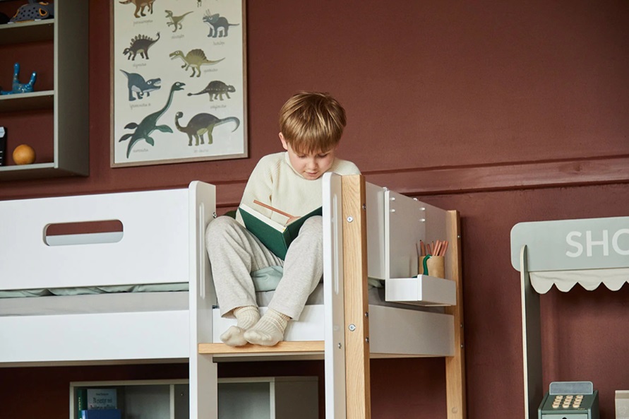 En loftsäng frigör mycket golvyta, och passar perfekt om man har ett lite mindre rum.
