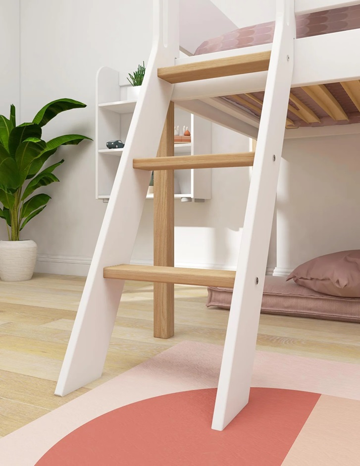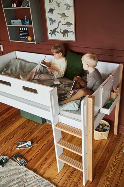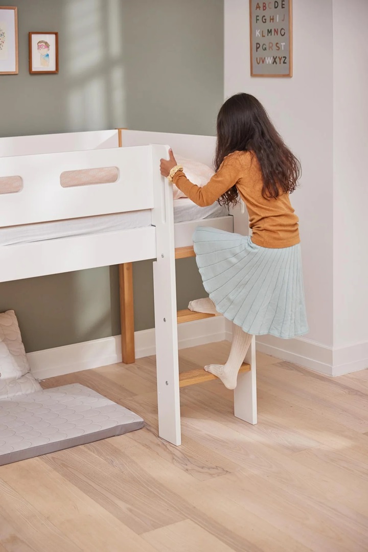Fantastisk låg vit loftsäng i skandinavisk stil!
