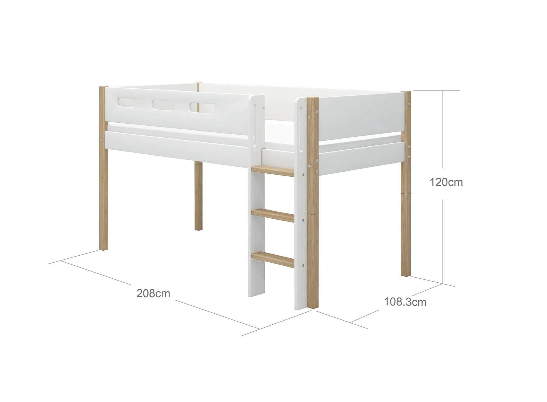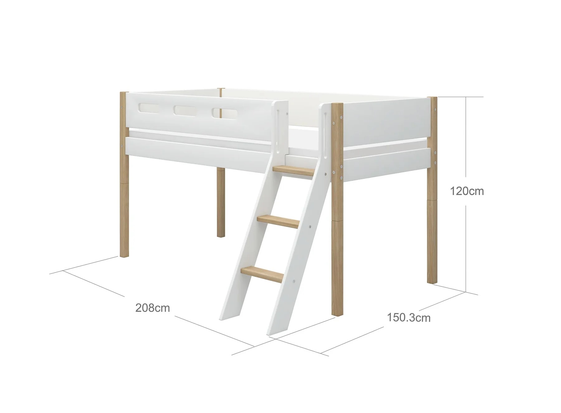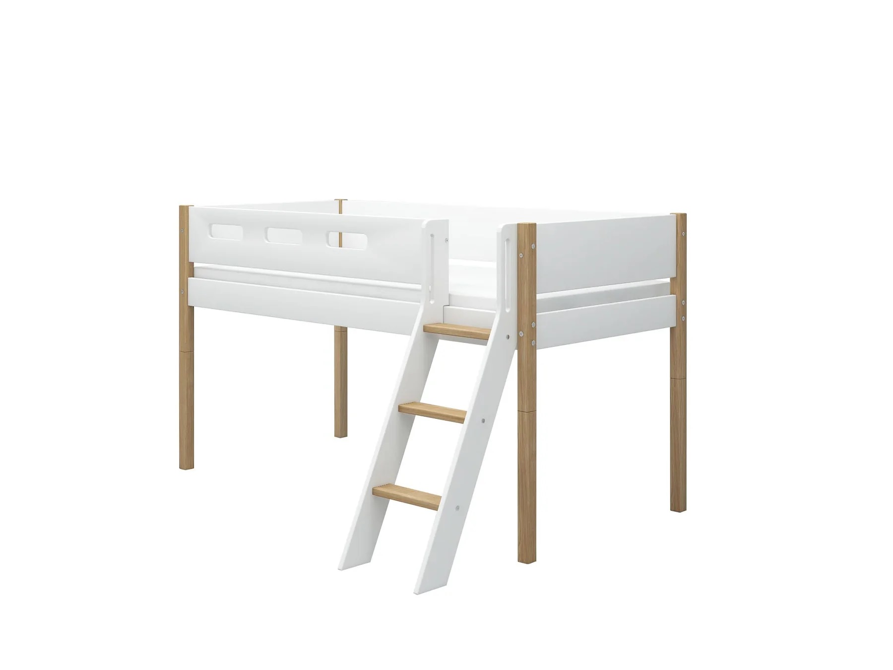 Flexa, låg loftsäng 90×200 cm Nor, vit/ek