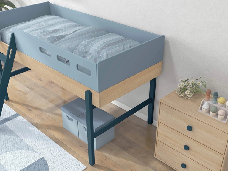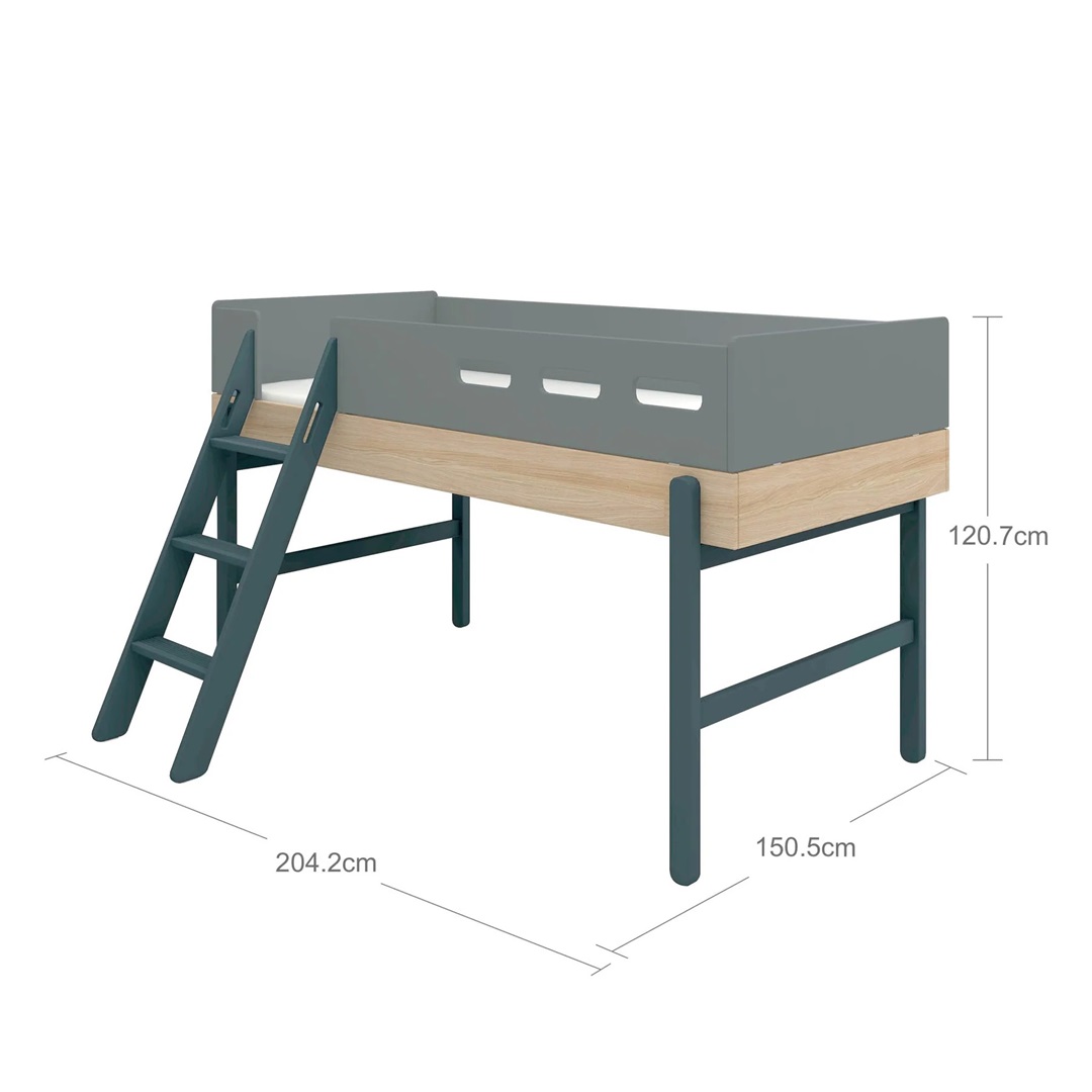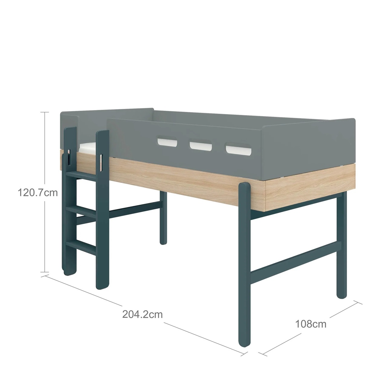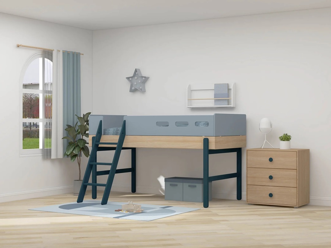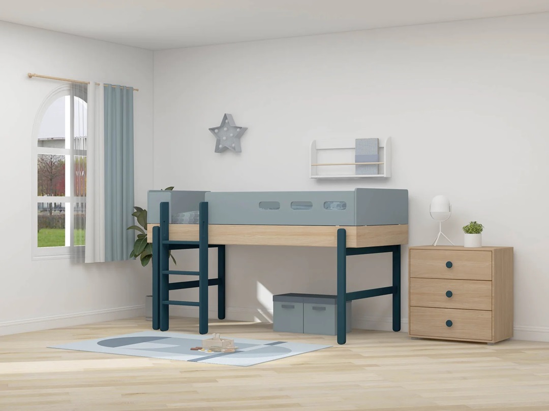 Flexa, låg loftsäng 90×200 cm Popsicle, blueberry oak