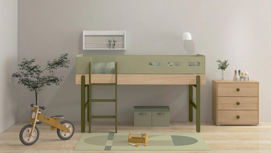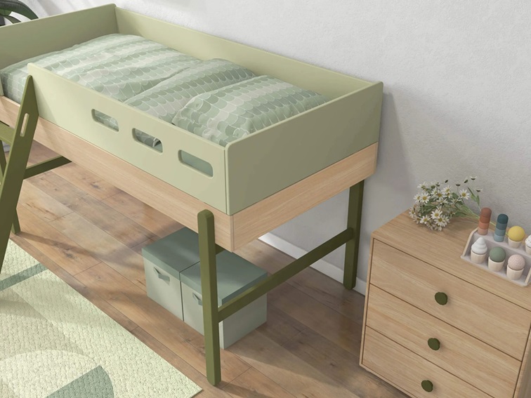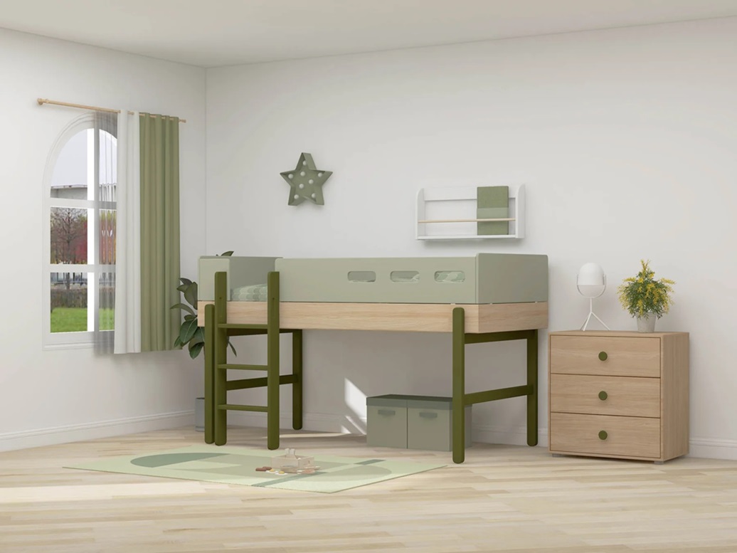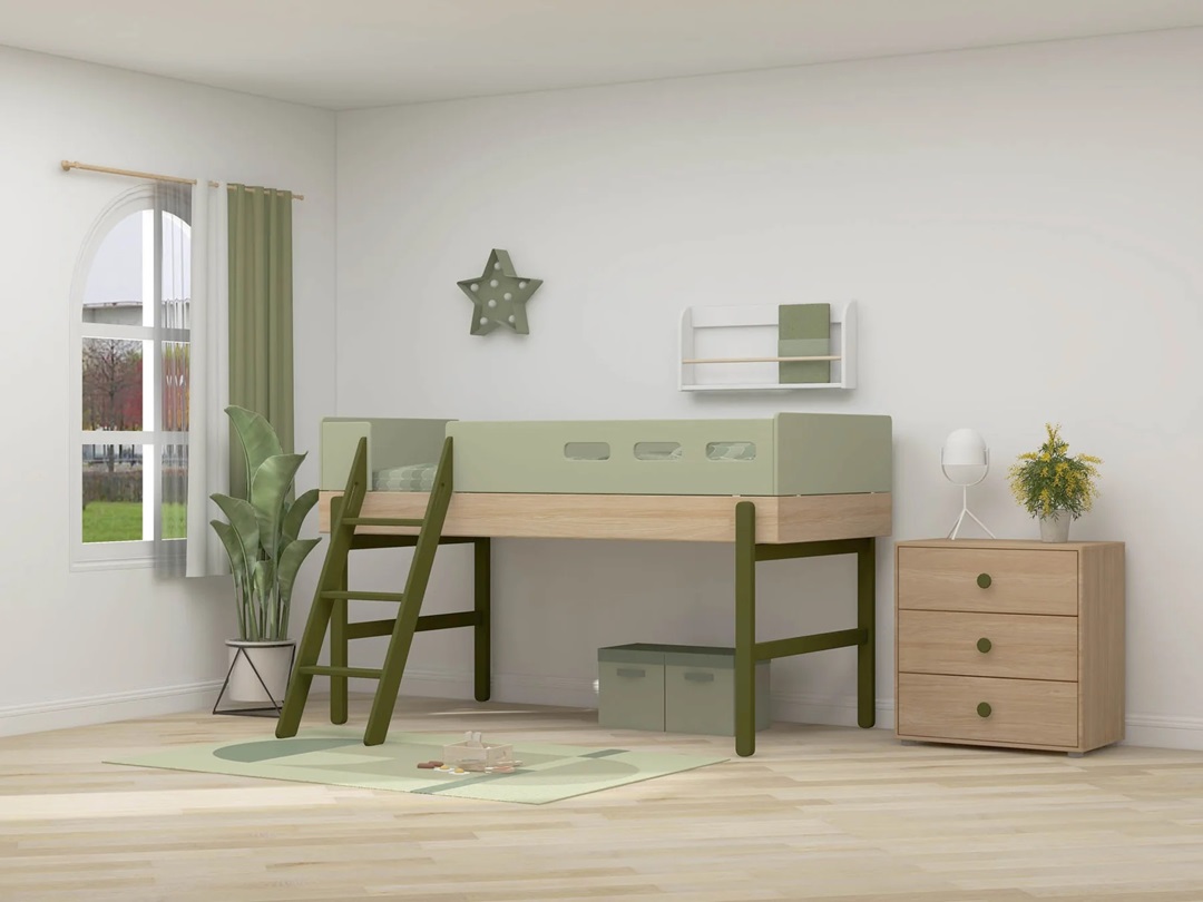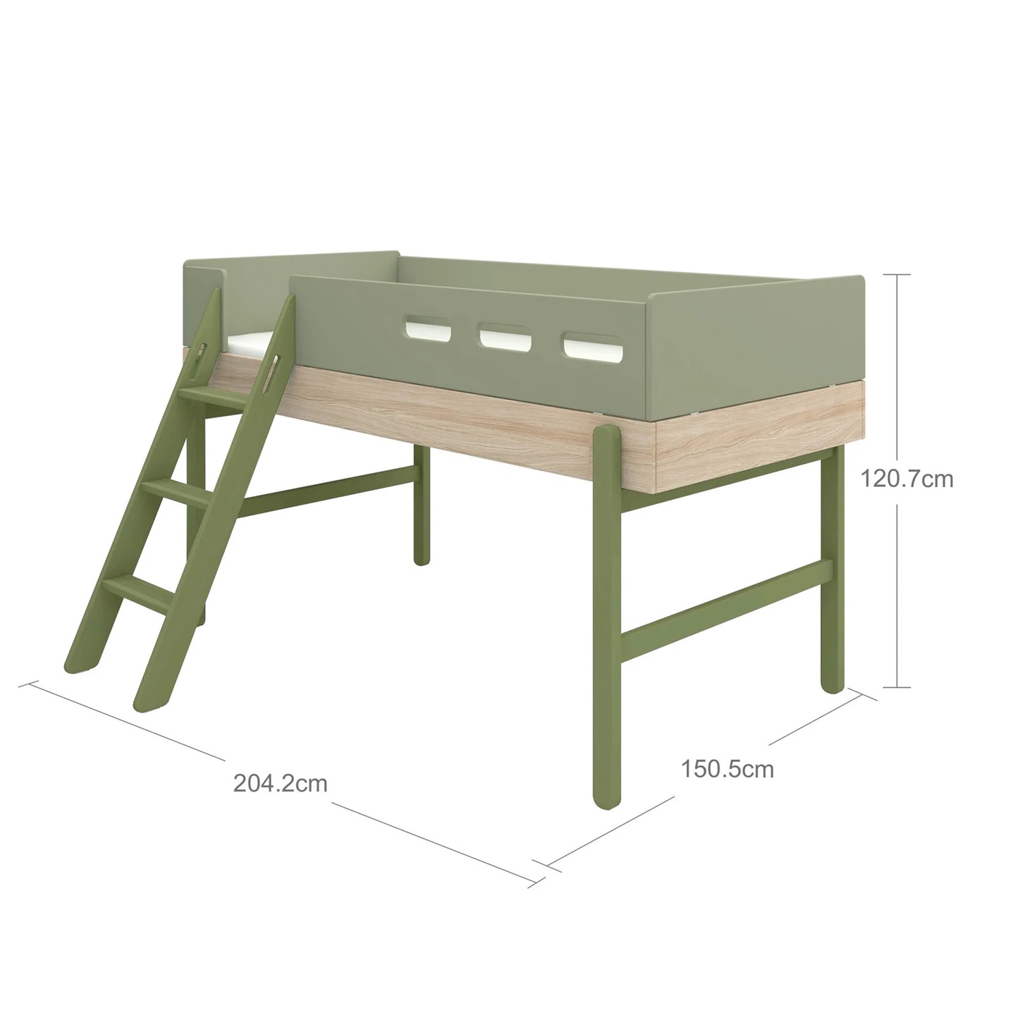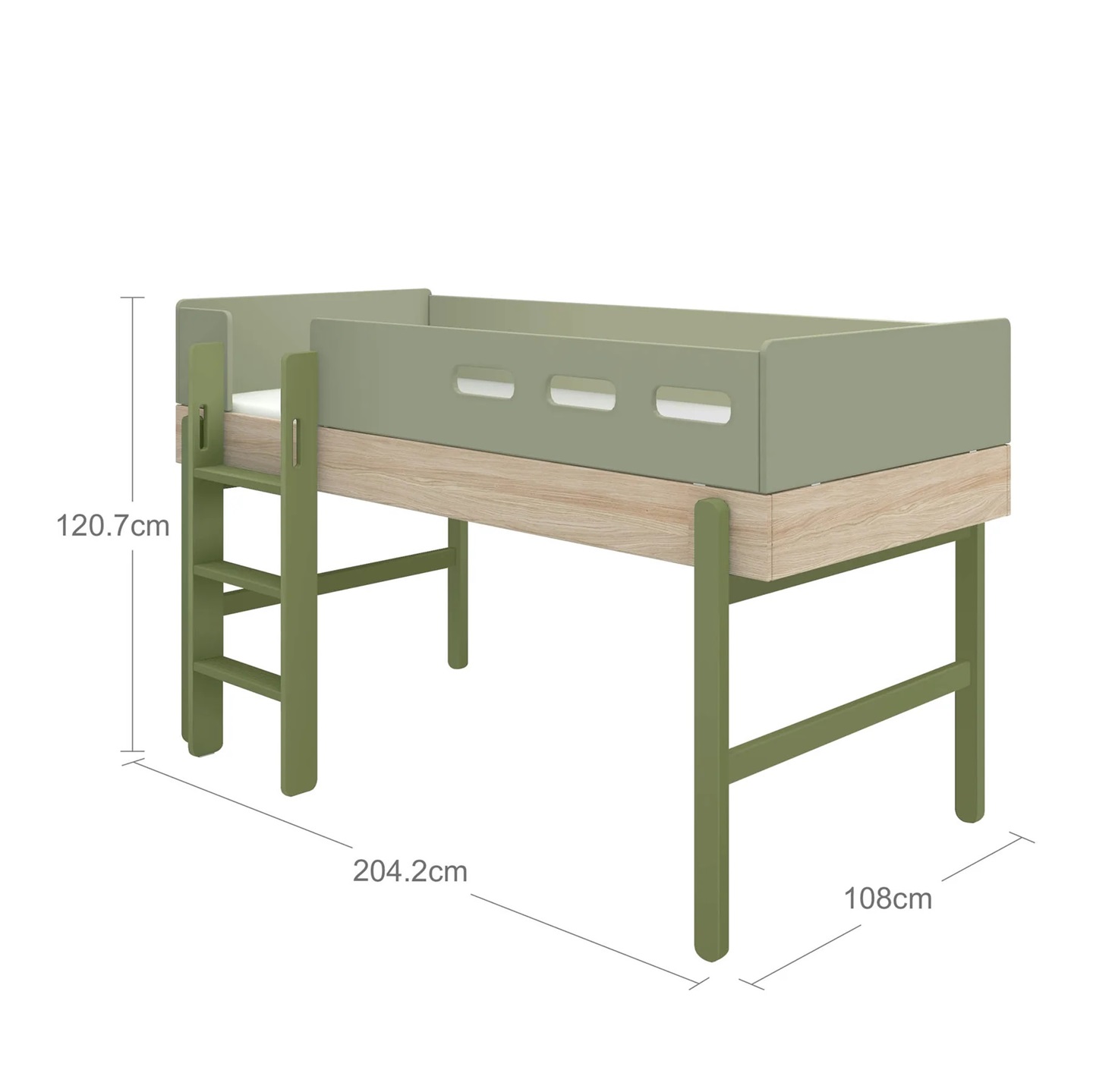 Flexa, låg loftsäng 90×200 cm Popsicle, kiwi oak