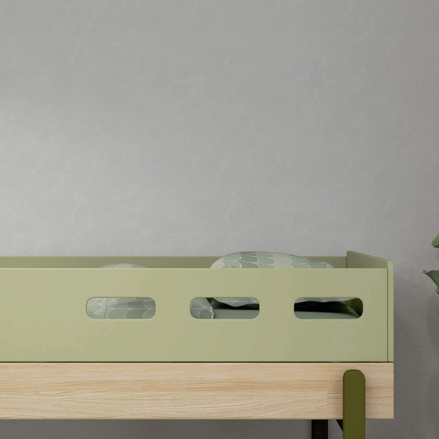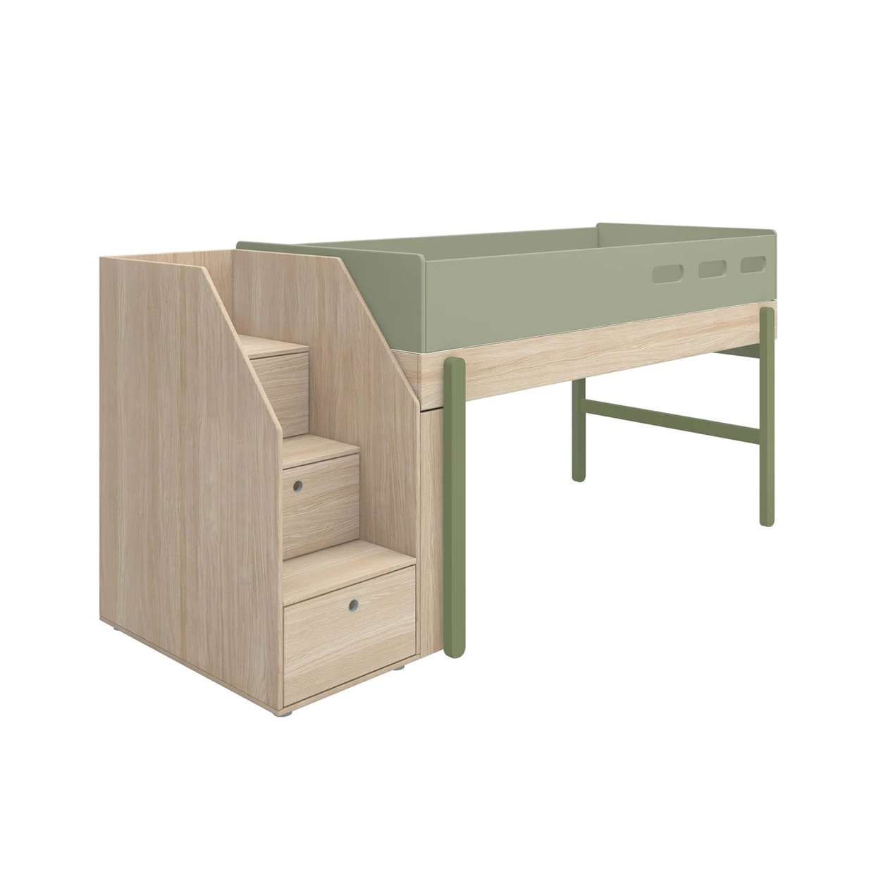 Flexa, låg loftsäng med trappa 90×200 cm Popsicle, kiwi oak
