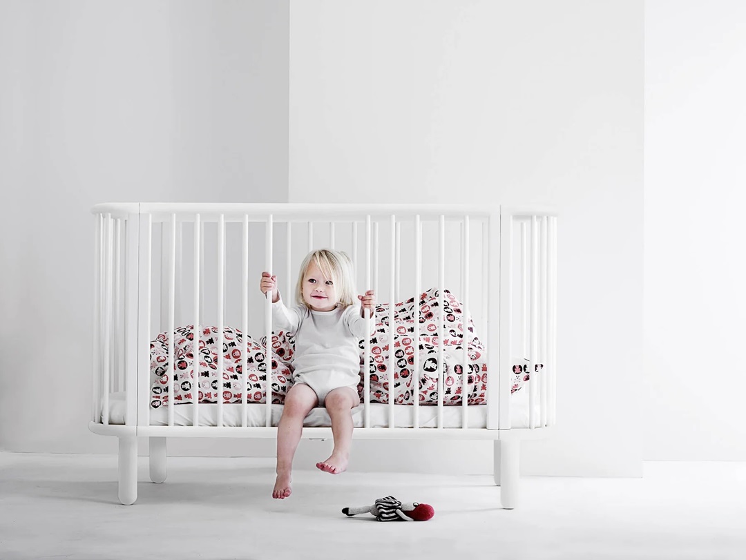 Den här fina spjälsängen kan anpassas efter barnets utvecklingsfaser, bland annat genom fem nivåer på sängbotten. Kan därmed användas från födsel till småbarnsåldern. När barnet är stort nog att kliva i och ur sängen själv, så kan man även ta bort spjälor. Unikt och praktiskt!