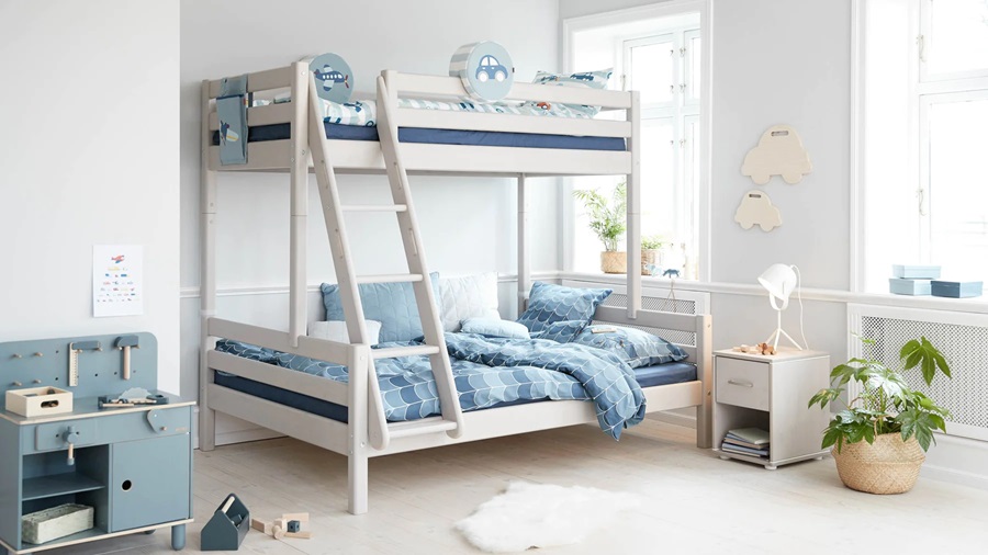 Fantastisk familjesäng i skandinavisk stil! Perfekt för syskonen i ett litet rum, eller för ditt barns vänner när de ska sova över.