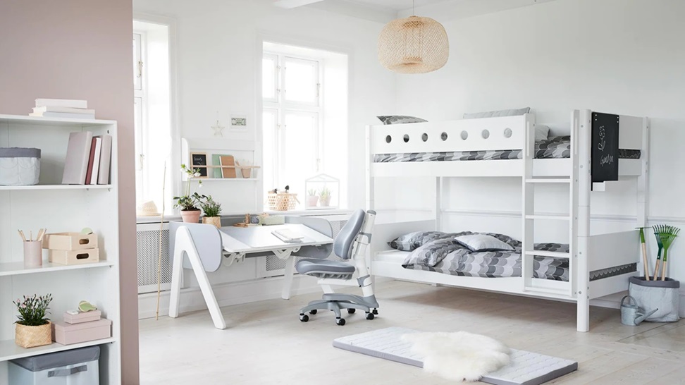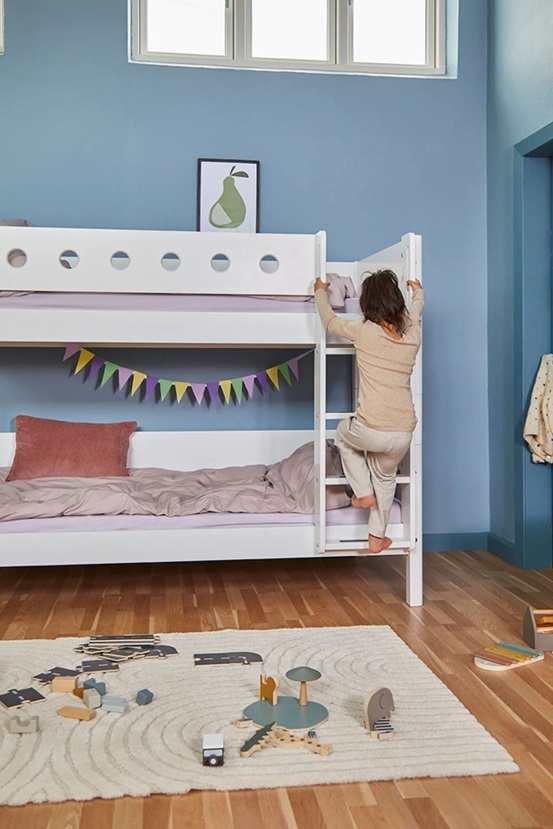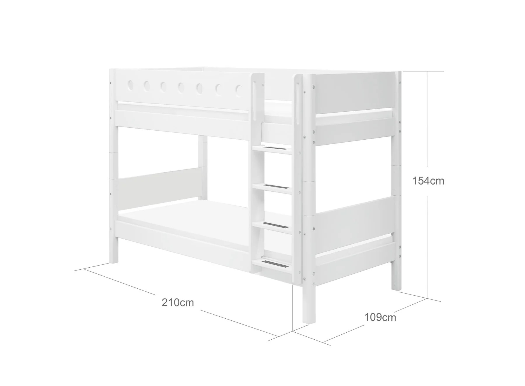 Fantastisk vit våningssäng i skandinavisk stil! Perfekt för syskonen i ett litet rum, eller för ditt barns vänner när de ska sova över.