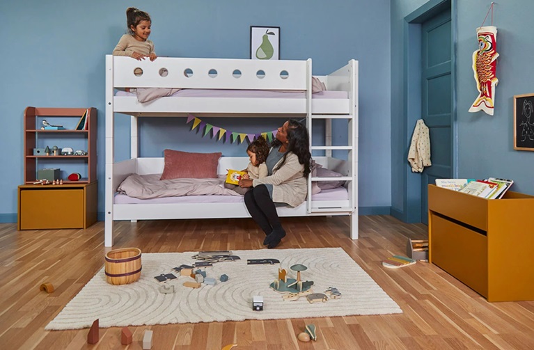 På vår fina syskonsäng White har man tänkt till ordentligt för att optimera golvytan i barnrummet. Vi lovar att sängen kommer bli ditt barns favorit, och inte bara för att sova i då den med enkla medel kan bli en riktigt bra myshörna. Många dekorerar med sänghimlar, vimplar eller ljusslingor, bara din kreativitet sätter stopp.