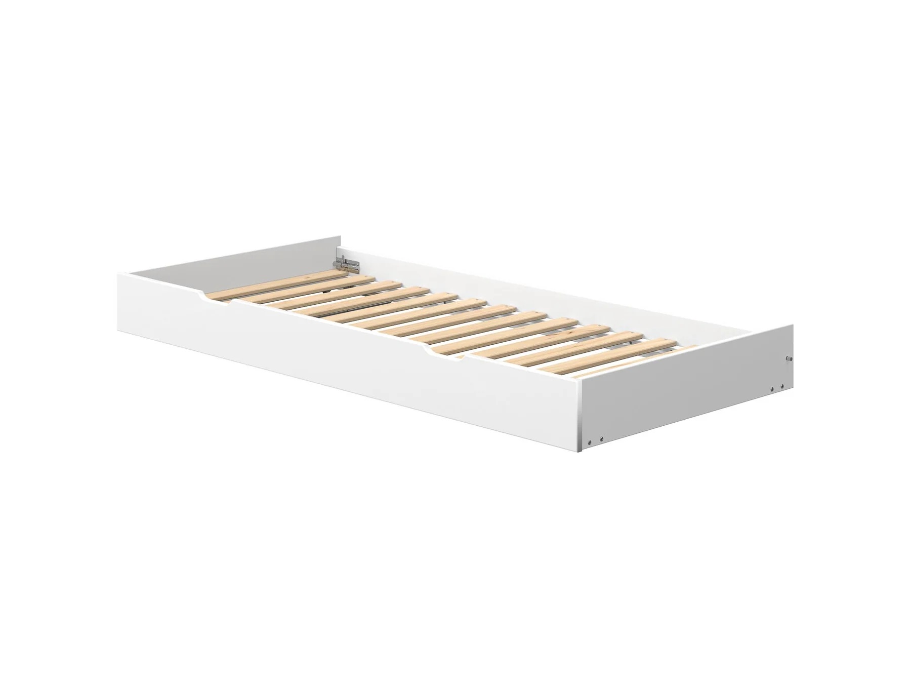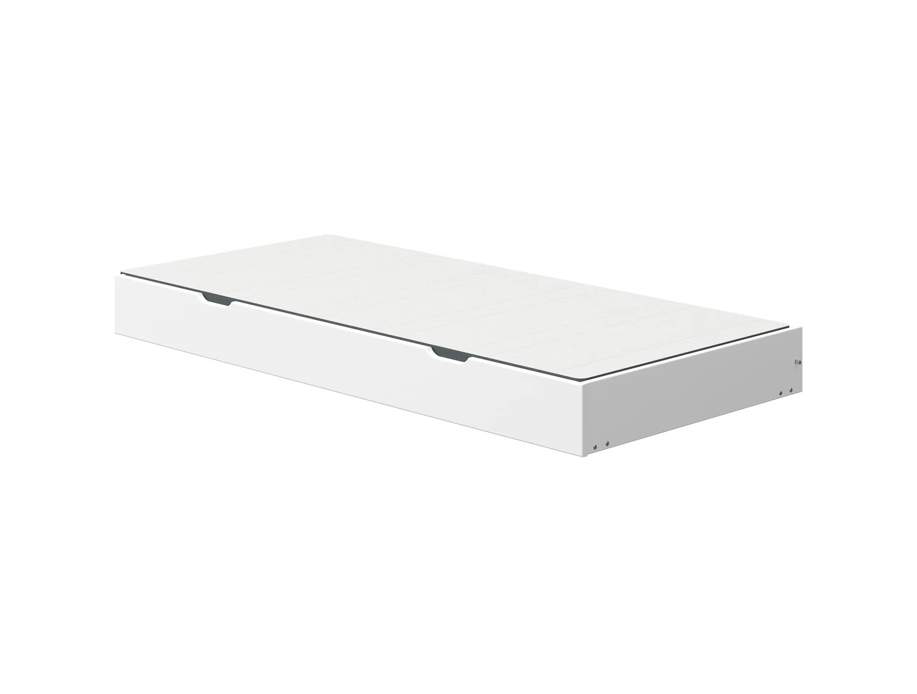 Sängen kan köpas med 2 förvaringslådor på hjul som är perfekta att förvara leksaker eller sängkläder. Om du önskar ha en tredje säng kan du köpa en utdragbar extrasäng.
