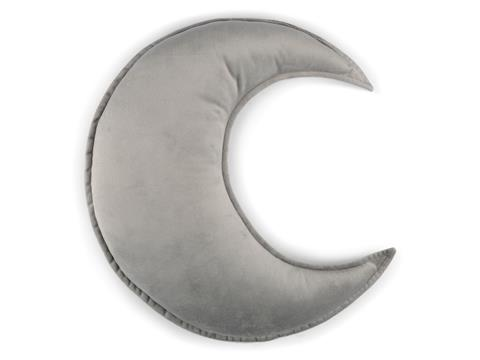 En fin grå kudde i form av en måne från FORM Living som kommer att bli en fin dekoration på barnets säng, myshörna eller varför inte under ett lektält ?