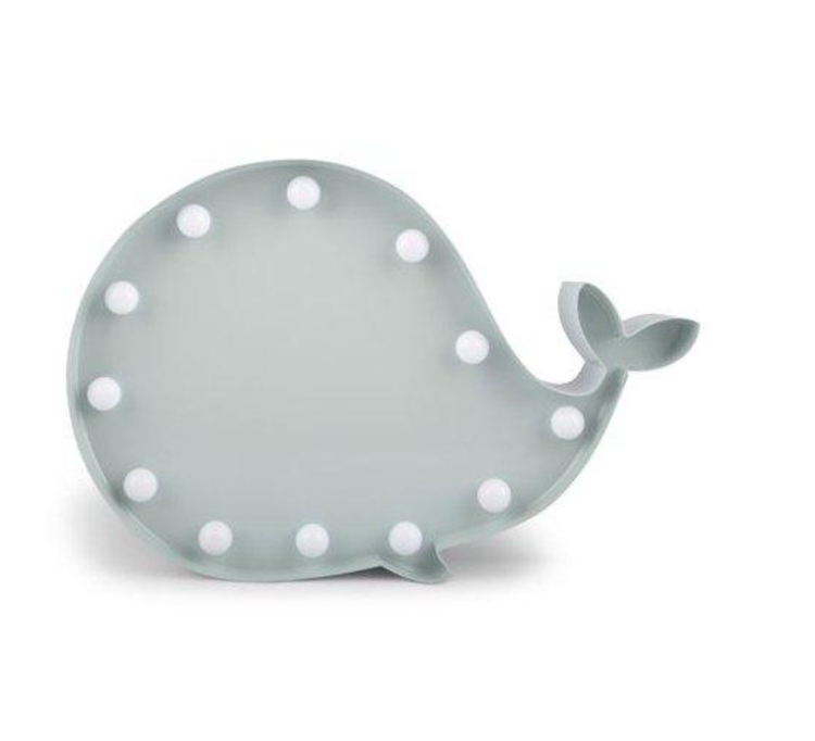 Denna fina och prisvärda vägglampa gjord i metall kommer att göra sig bra i övrig barnrumsinredning. Lampan har en form av en val och skapar ett modernt och mysigt intryck i barnrummet. De 12 små LED lamporna ger ett varmvitt och mysigt sken, perfekt för barnet! Du hänger enkelt upp lampan genom att sätta en spik eller skruv i väggen och sedan hänga upp den i hålet på baksidan. Lampan kan självklart även ställas i en hylla eller på ett skrivbord. Medföljer gör även en 1,8 meter lång sladd samt transformator.