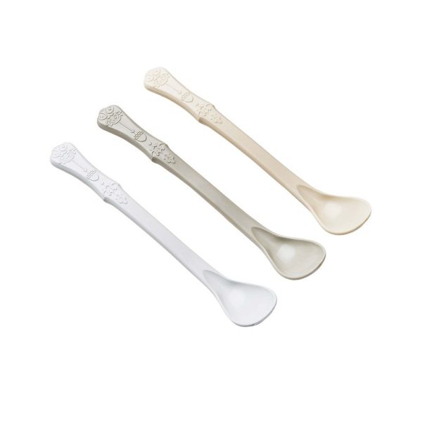 Skedarna är formade som en lätt S-kurva och de långa handtagen gör att barnet når botten av skålen enkelt oavsett innehåll. Perfekta för de första tuggorna!