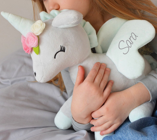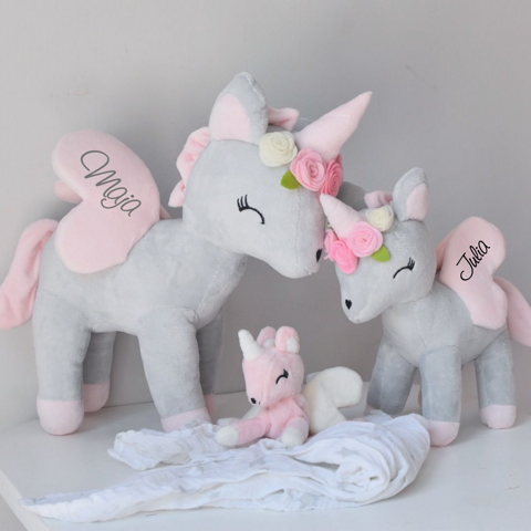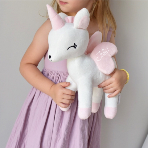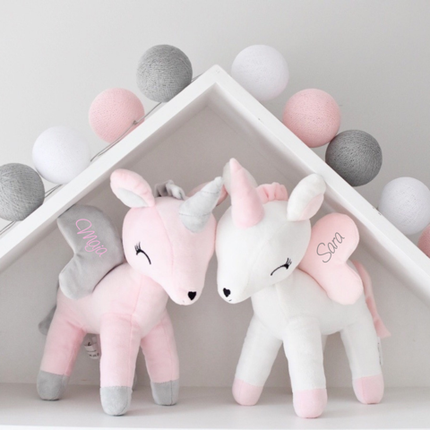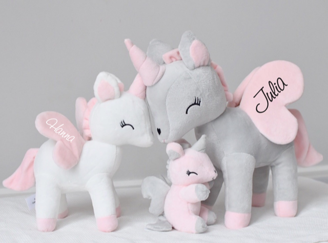 En fantastisk och vacker enhörning som kommer att bli ditt barns favoritkramdjur under många år framöver. Förutom att den är mjuk med fina detaljer som vingar och en hjärtformad nos är den underbart fin att ha i barnrummet som inredningsdetalj. Barnets namn trycks på enhörningen. Gjord helt av mjuk och vacker plysch och produkten är CE-märkt, och har en så kallad EN71-1-2-3…