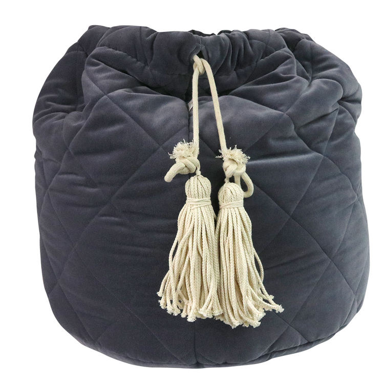 Förvaringskorgen är rund och gjord av underbart mjuk sammet, med tillhörande knytband som har fina och dekorativa fransar. Förvaringskorgen är mycket praktisk, du kan ha den till leksaker, mjukisdjuren eller varför inte som en bedårande tvättkorg.