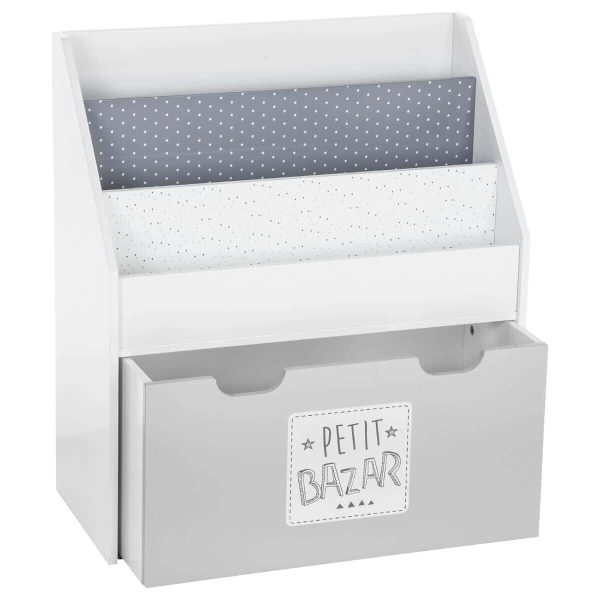 Grå förvaringslåda för böcker till barnrummet