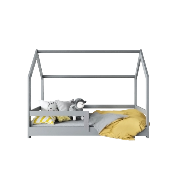 En stilren grå hussäng till barnrummet som även fungerar att använda som en koja, och när det är dags att sova är det den ultimata sovplatsen för ditt barn.
