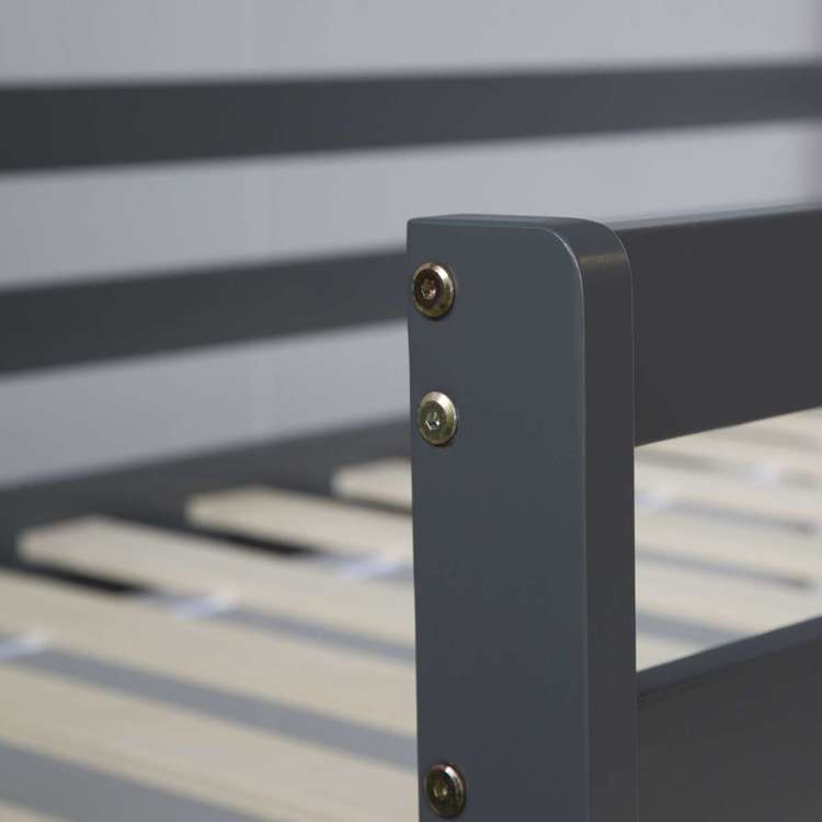 Grå loftsäng med rutschkana