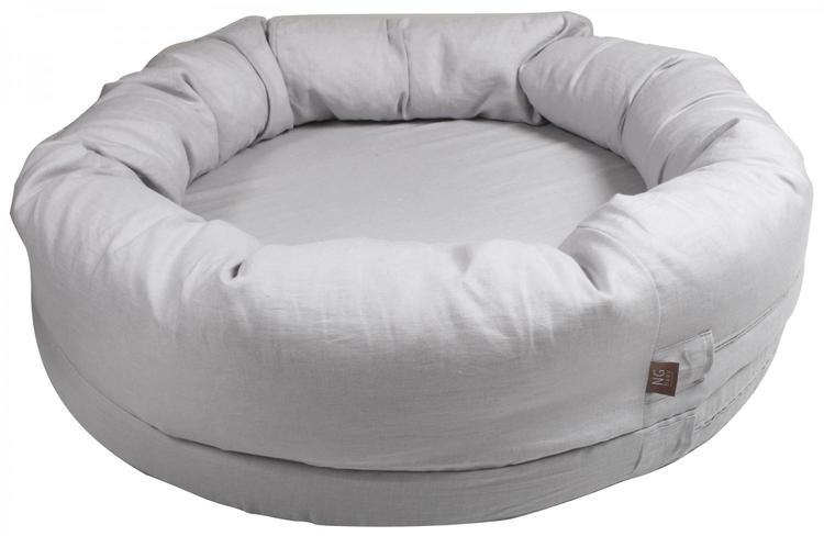 Myspölens överdrag är gjort i 100 % linne och är såväl avtagbart som tvättbart. Linne är dessutom ett perfekt material då det håller din baby sval när det är varmt, och värmer när det är lite svalare.
