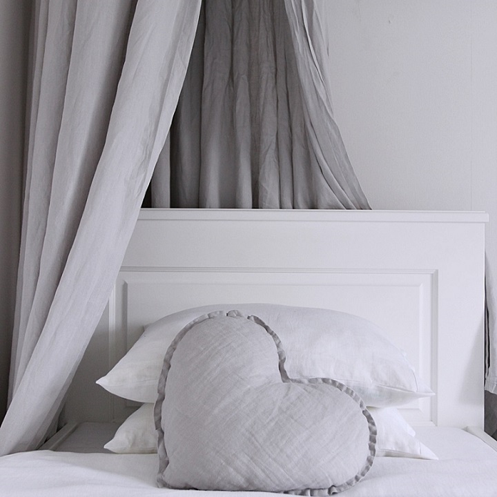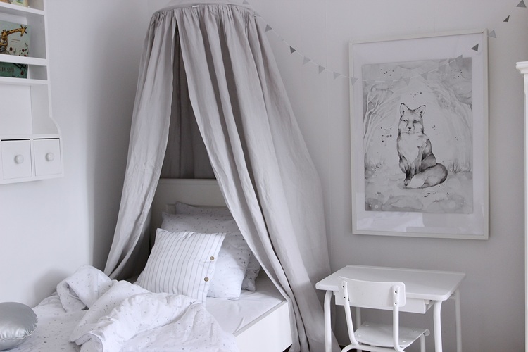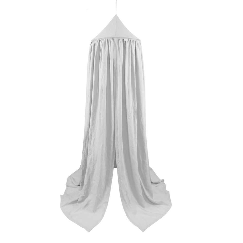 Grå sänghimmel av linne till barnrummet med ljusslinga, Cotton&Sweets
