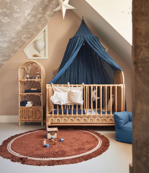 Tillverkad av mjuk bomullssammet med skimrande stjärnor och en måne. Charmig i sin enkelhet och idealisk för barnrumsinredningen.