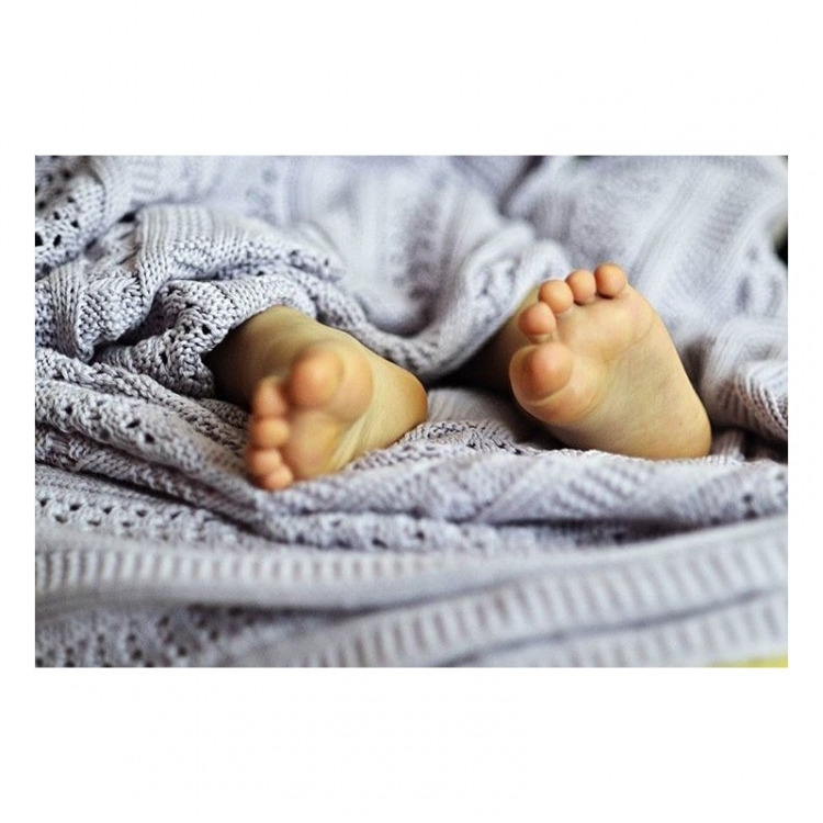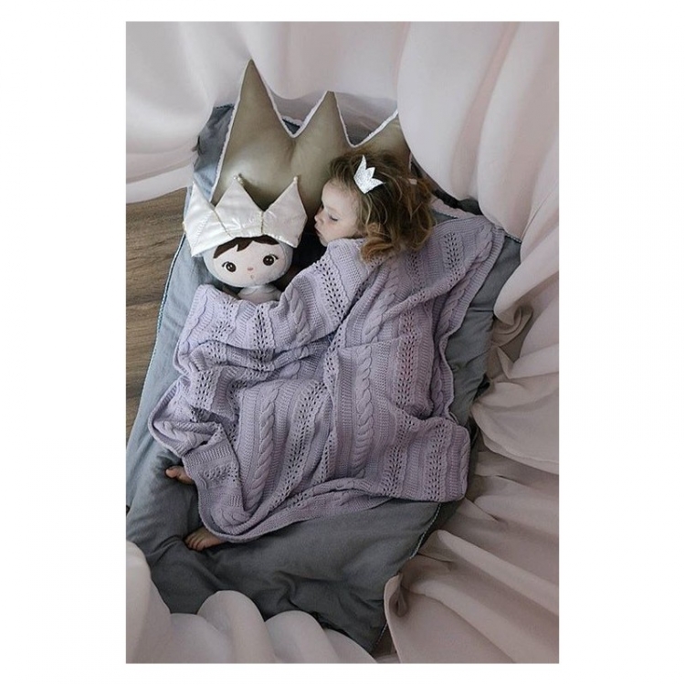 Grå stickad barnfilt/pläd dreamy, YOSOY