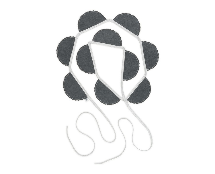 Vimpeln består av en tråd som är utformad för minsta synlighet, samt tio runda flaggor som enkelt kan hängas upp i taket eller i fönstret och kommer att omvandla ditt barns rum till något unikt.