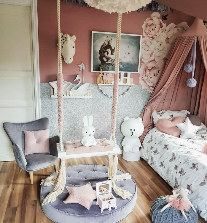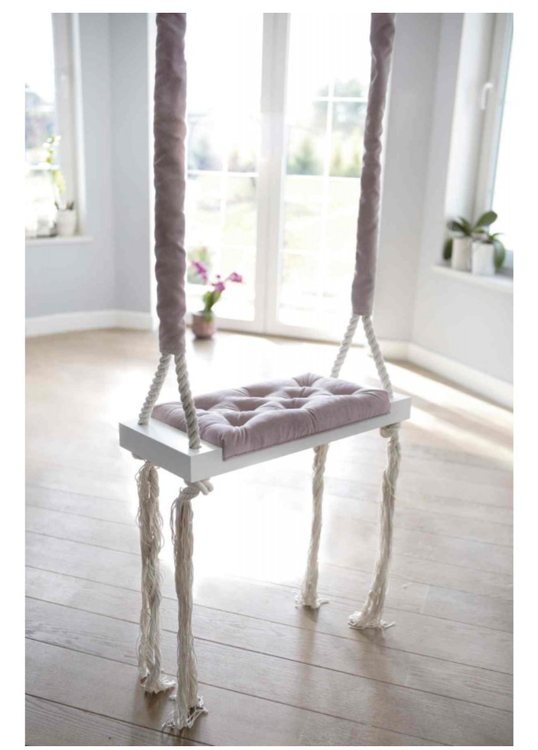 Denna vackra barngunga är en otroligt vacker möbel som bidrar enormt till en bra känsla när du ska inreda barnrummet, terassen eller göra något speciellt på verandan. Gungan är byggd i en tidlös form och kommer skänka dig glädje oavsett årstid eller väder. Repen är tjocka, och barnet sitter bekvämt på det mjuka sätet. Med sitt unika utseende kommer denna gunga att bli en favoritdetalj i ert hem. I utbudet finns även gungor anpassade för de allra minsta barnen.