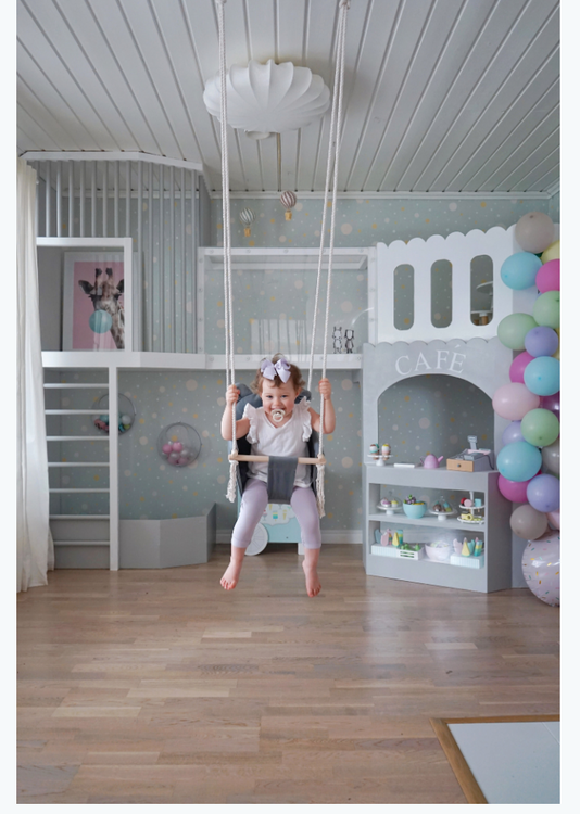 *Till produkten medföljer två rejäla metalringar som du enkelt fäster på krokar som du själv hänger upp i taket. Krokarna medföljer ej, så se till att skaffa ett par rejäla som håller för mycket vikt.