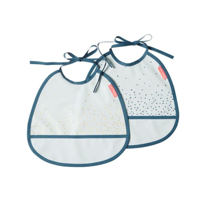 Fina haklappar i 2-pack från danska Done By Deer med en praktisk ficka på framsidan som samlar upp eventuellt spill.