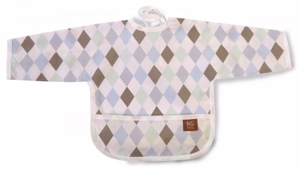 Denna mycket fina, mjuka och ekologiska haklapp med ärmar är full av vackra färger. Denna modell är framtagen för att skydda barnet från att spilla och kladda ner sig när det äter. Denna typ av haklapp är optimal när barnet ska träna på att äta själv. Förutom vid måltider kan du självklart använda NG Babys haklapp när det är dags för att måla eller pyssla. Tyget är gjort av bomull som är GOTS-certifierad och är vattenavisande, det är därför mycket enkelt att torka av med en trasa eller skölja under rinnande vatten. Haklappen finns även i ett utförande utan ärmar för det lite större barnet.