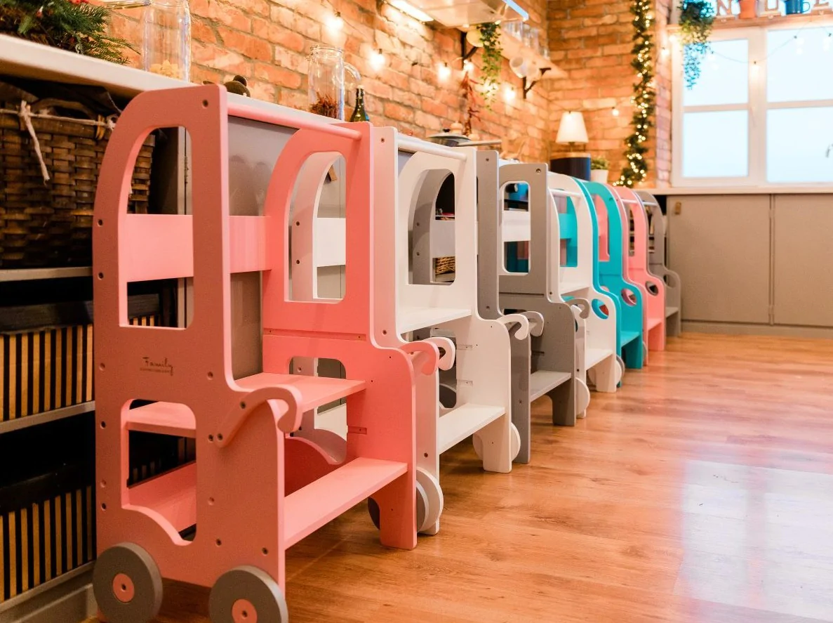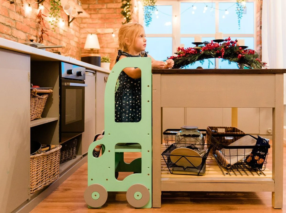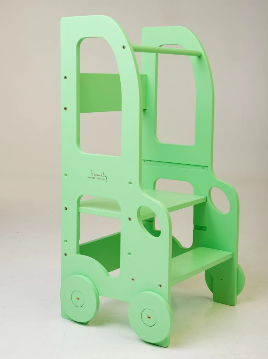 Den tjusiga handgjorda hjälpa till pallen underlättar när barnet ska borsta tänderna, tvätta händerna, assistera föräldrarna vid matlagning eller annan aktivitet dit minstingen inte riktigt når upp. Ditt barn kommer att älska att skrivbordet ser ut som en bil!
