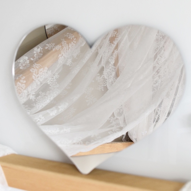 Superfin spegel i form av en hjärta gjord i tålig akryl . En fantastisk dekoration till barnrummet och en fin inredningsdetalj som du kommer att älska. Enkel att hänga upp på väggen med hjälp av metallkroken som medföljer.