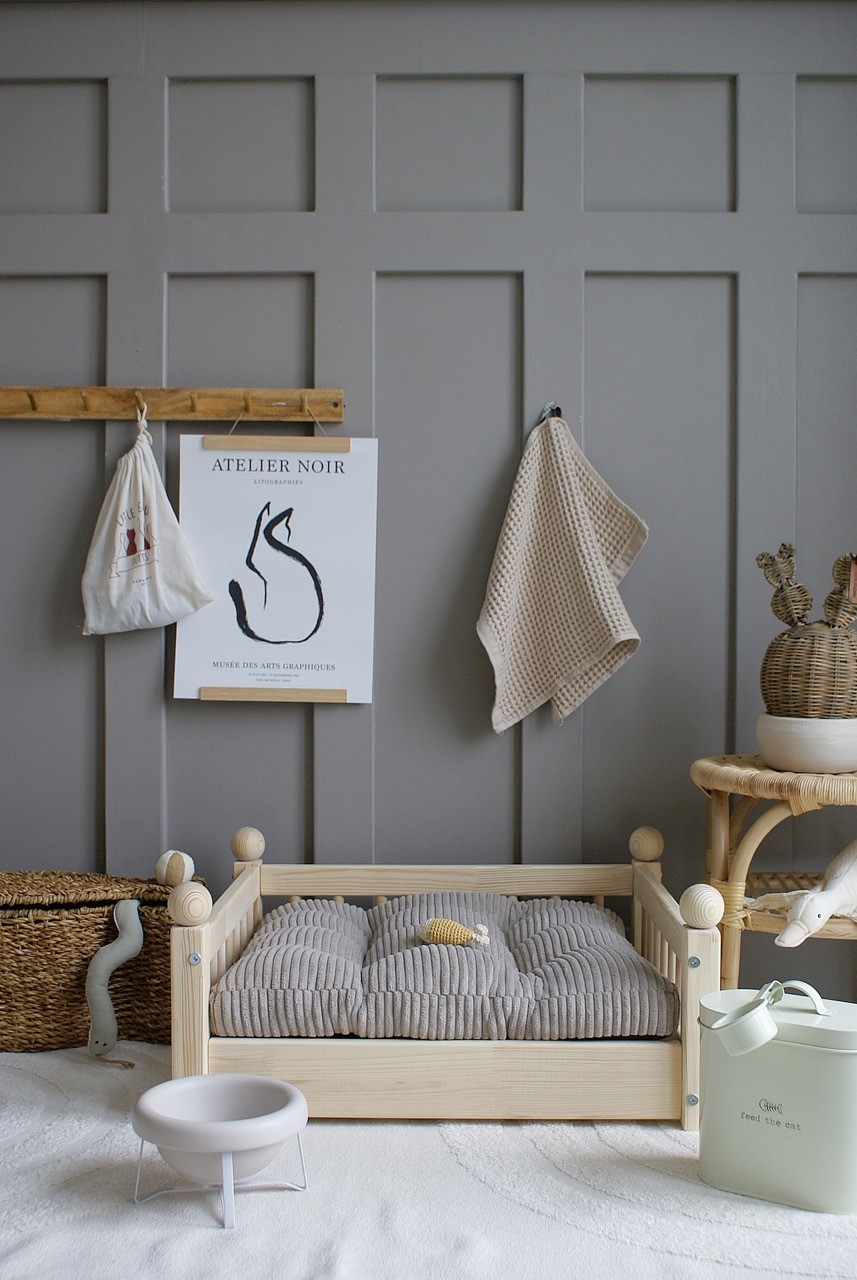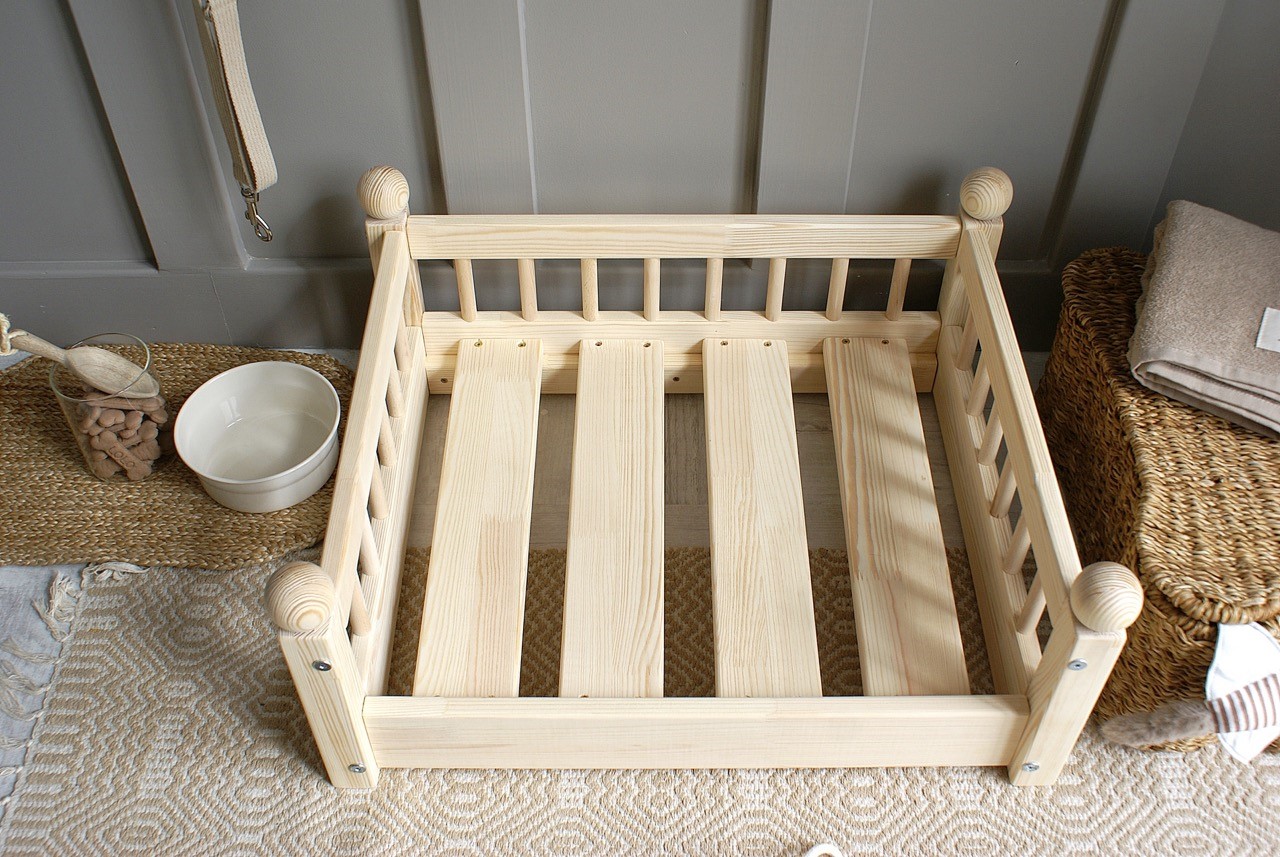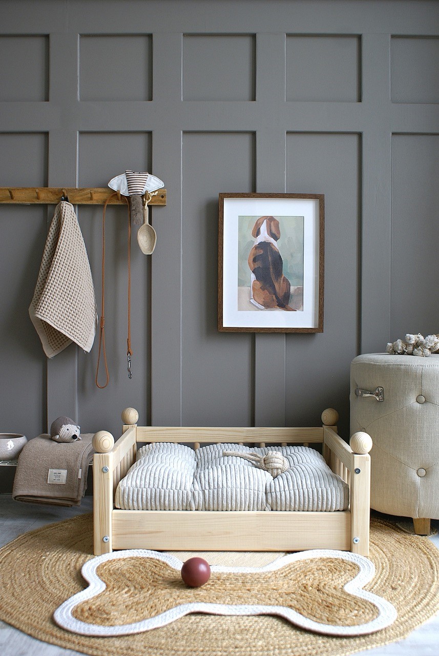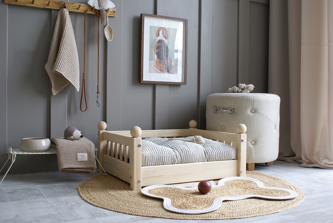 Hundbädd/hundsäng ”Taco” i en naturlig träfinish är den perfekta kombinationen av skandinavisk estetik och funktionalitet.