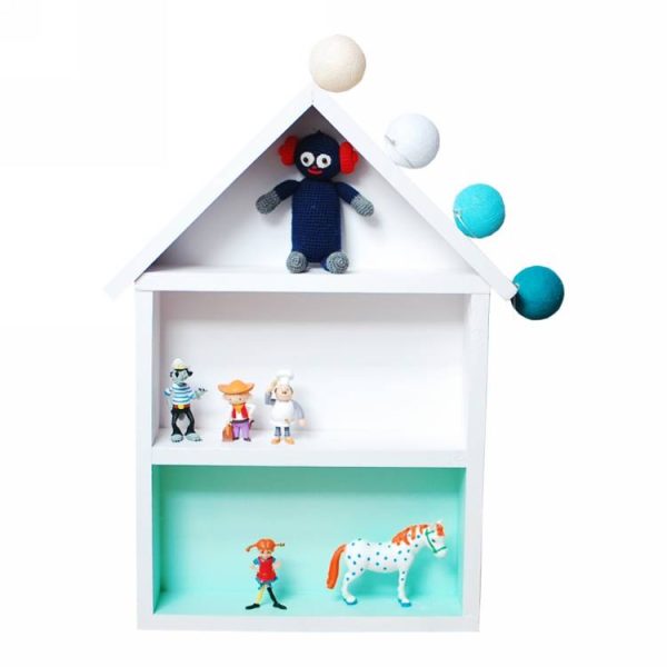 En väldigt populär inredningsdetalj till barnrummet, en så kallad hushylla. Hyllan fungerar som bokhylla, eller vid förvaring av leksaker och fästes enkelt på väggen. Hushyllan är även enkel att hålla ren. Hyllan är gjord i pinjeträ och kommer att hålla länge. Färgen är anpassad för barnleksaker och ger säkerhet till barnet. Mått: 60x40x10 cm