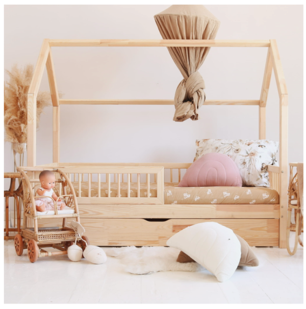 Alex är vår absoluta storsäljare! Denna fantastiska hussäng är helt handgjord med stor passion, utav högkvalitativ limträ. Limträ har fördelen, jämfört med massivt trä, att de inte spricker och att det inte finns några kvistar som påverkar utseendet. En stabil och vacker säng av hög kvalitet!Extra tillval:Färg: välj mellan natur (obehandlad), lackad, vit och gråFörvaringslåda med…
