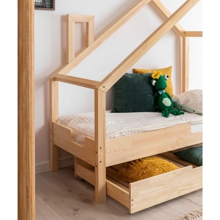 Det sneda taket ger inte bara en stugliknande siluett, det gör även att dessa sängar är lätta att möblera med även i rum med snedtak!