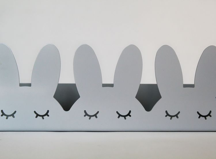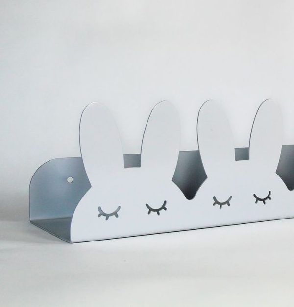 Denna fina grå hylla med söta kaniner kommer att bli en fantastisk inredningsdetalj i ert hem.