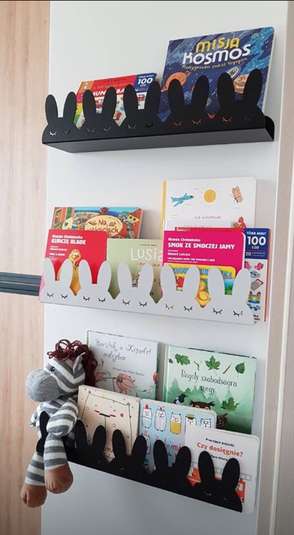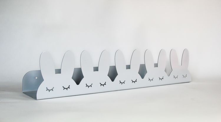 Denna fina grå hylla med söta kaniner kommer att bli en fantastisk inredningsdetalj i ert hem. Dessutom mycket praktisk för att ställa favoritboken eller gosedjuret på. Mått: Längd 55 cm, djup 13 cm och höjd 12 cm. Skruvar ingårMaterial: Hyllan finns i vit, och är helt gjord i stål.Designer: Babylove.se