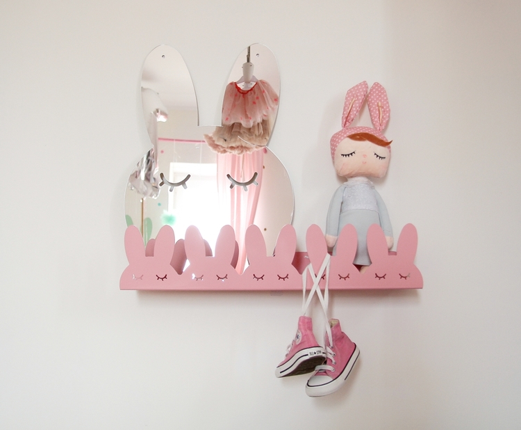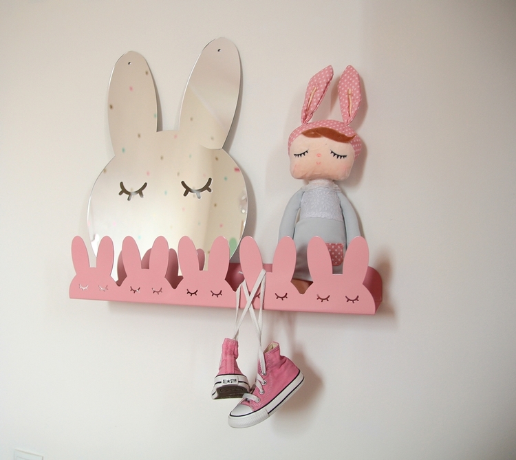 Denna fina rosa hylla med söta kaniner kommer att bli en fantastisk inredningsdetalj i ert hem.