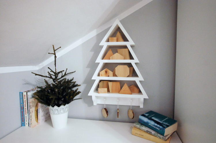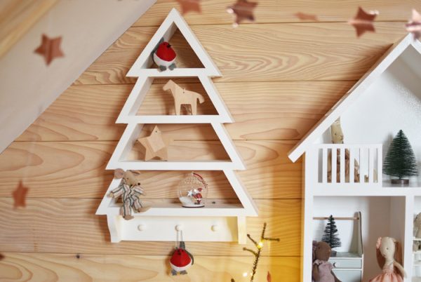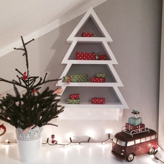En superfin hylla i form av en julgran. Denna hyllan kan användas som till exempel en adventskalender genom att hänga små presenter på den.  Eller varför inte bara ställa fint julpynt på den ?