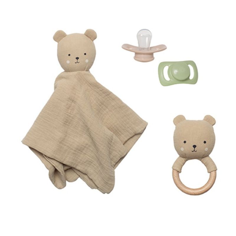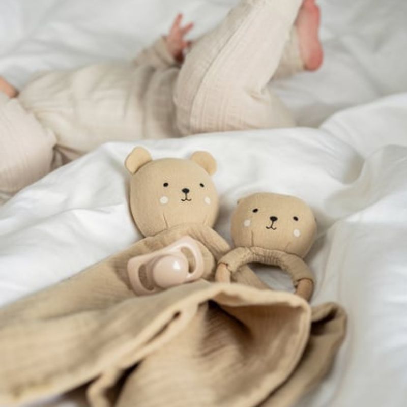• Snuttefilt i form av en gullig kanin eller nalle, tillverkad av 100% muslinbomull. En snuttefilt blir snabbt en trygg följeslagare för bebisen och ger både tröst och mys. Tvättas i 30°.