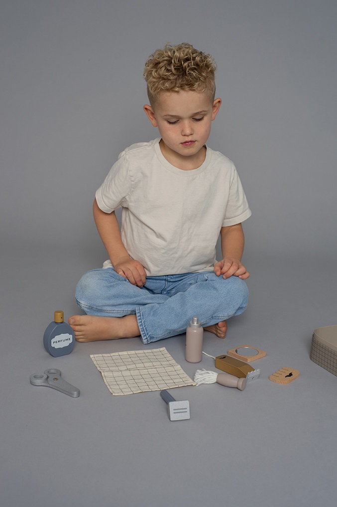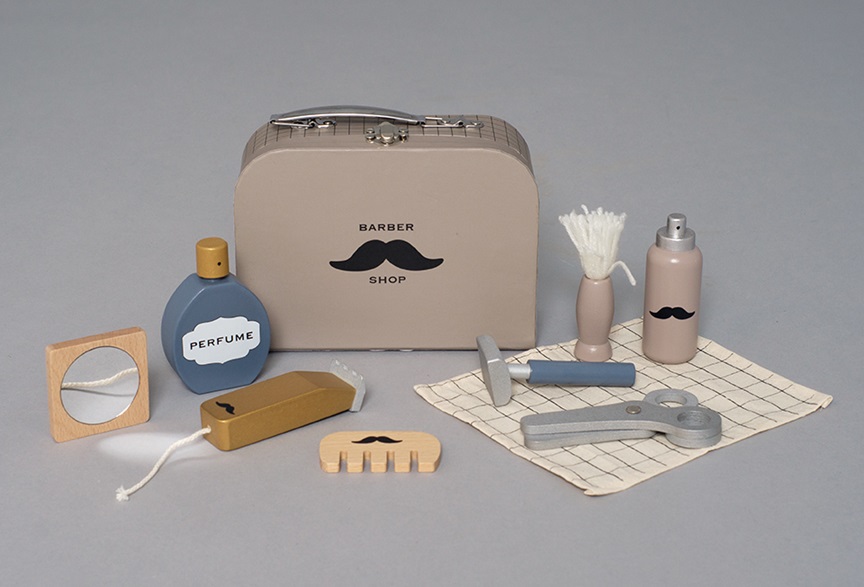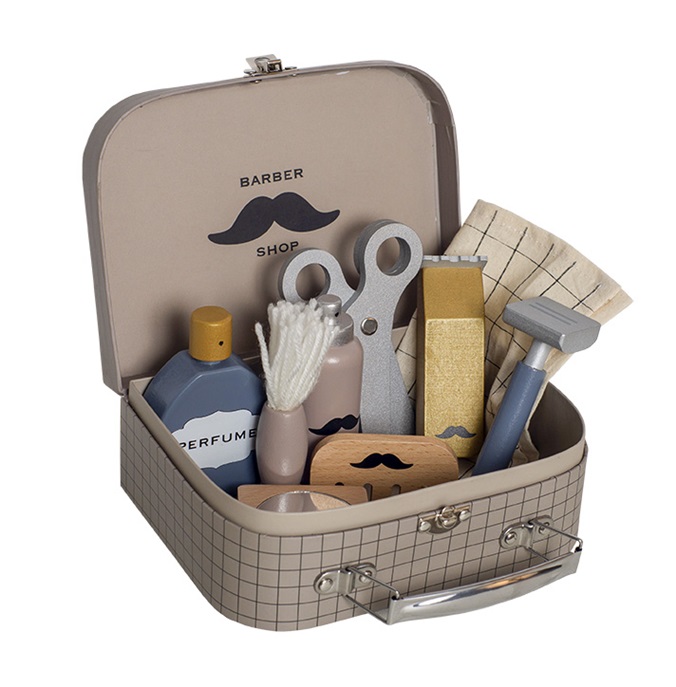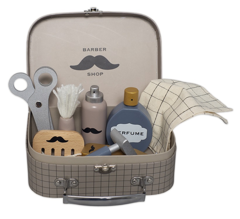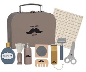Nu kan ditt barn öppna en egen barberarsalong med denna barberarväska hemma! Barberarväskan innehåller följande:1 väska1 raklödder1 rakhyvel1 sax1 kam1 parfymflaska1 trimmer1 rakborste1 spegel1 handdukKombinera gärna med andra produkter från samma serie.Designer: JaBaDaBaDo