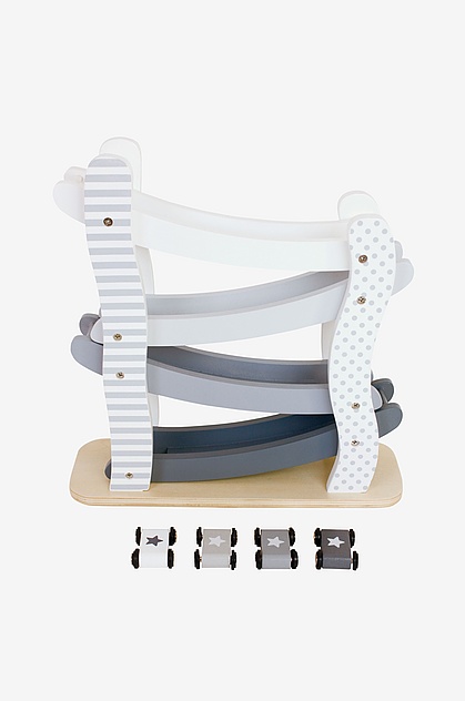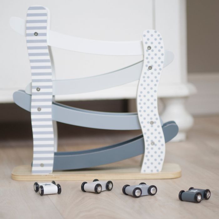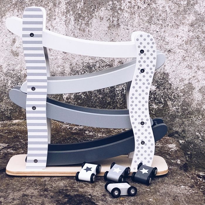 En tidlös leksak som ditt barn kommer att leka med om och om igen, och igen, och igen…. Rolig bilbana för barn i alla åldrar, bilarnas färd roar barnen som inte kan få nog. Vacker design och gjord av trä för bästa hållbarhet och känsla. Stilren och vacker vilket gör att du enkelt kan passa in den i övrig barnrumsinredning. Perfekt gåva vid dopet eller födelsedagen. Från svenska Jabadabado.