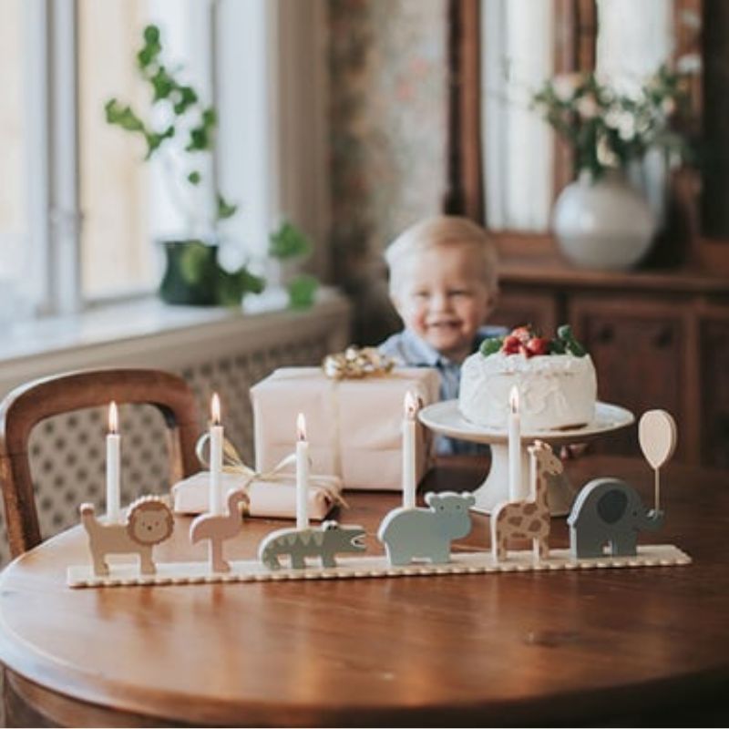Låt lejonet, giraffen och krokodilen vara med i firandet medan ljusen sprider en mysig och festlig stämning. Tåget är tillverkat i trä och noggrant designat för att hålla i många år – en tidlös dekoration som kan plockas fram varje födelsedag.