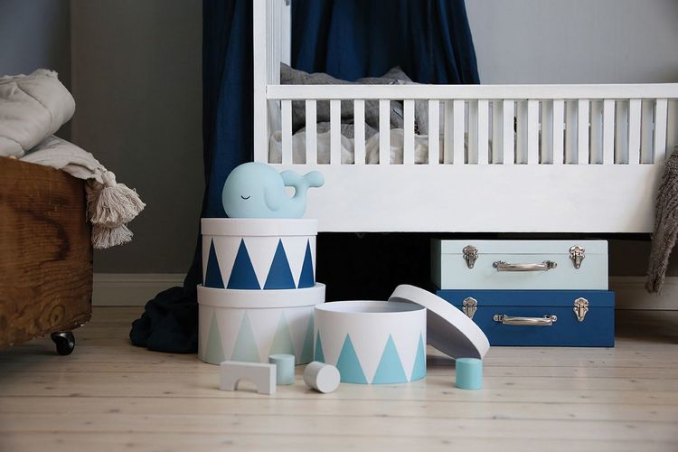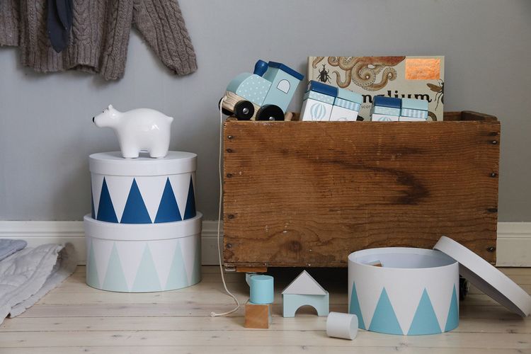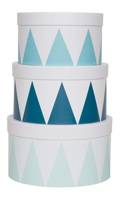 Ett underbart set av 3 st. superfina förvaringsboxar i blå nyanser. Rymlig och smart och dessutom mycket fin inredningsdetalj. Varför inte placera flera på varandra och skapa ett unikt och praktiskt sängbord eller stoppas i varandra. Mått: Diameter: Stor: 23 cm, Mellan: 20 cm, Liten: 16 cm Material: Hård pappDesigner: JaBaDaBaDo