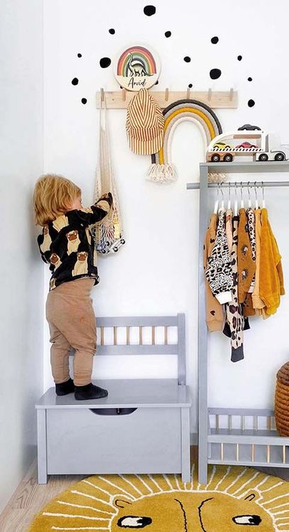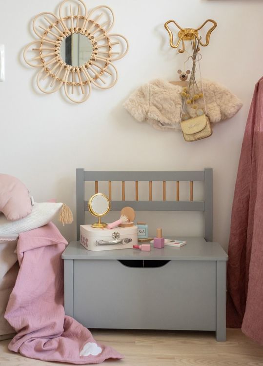 En smart kombination av förvaring och mini-bänk från svenska Jabadabado, helt anpassad för barnrummet. En optimal möbel att inreda med.