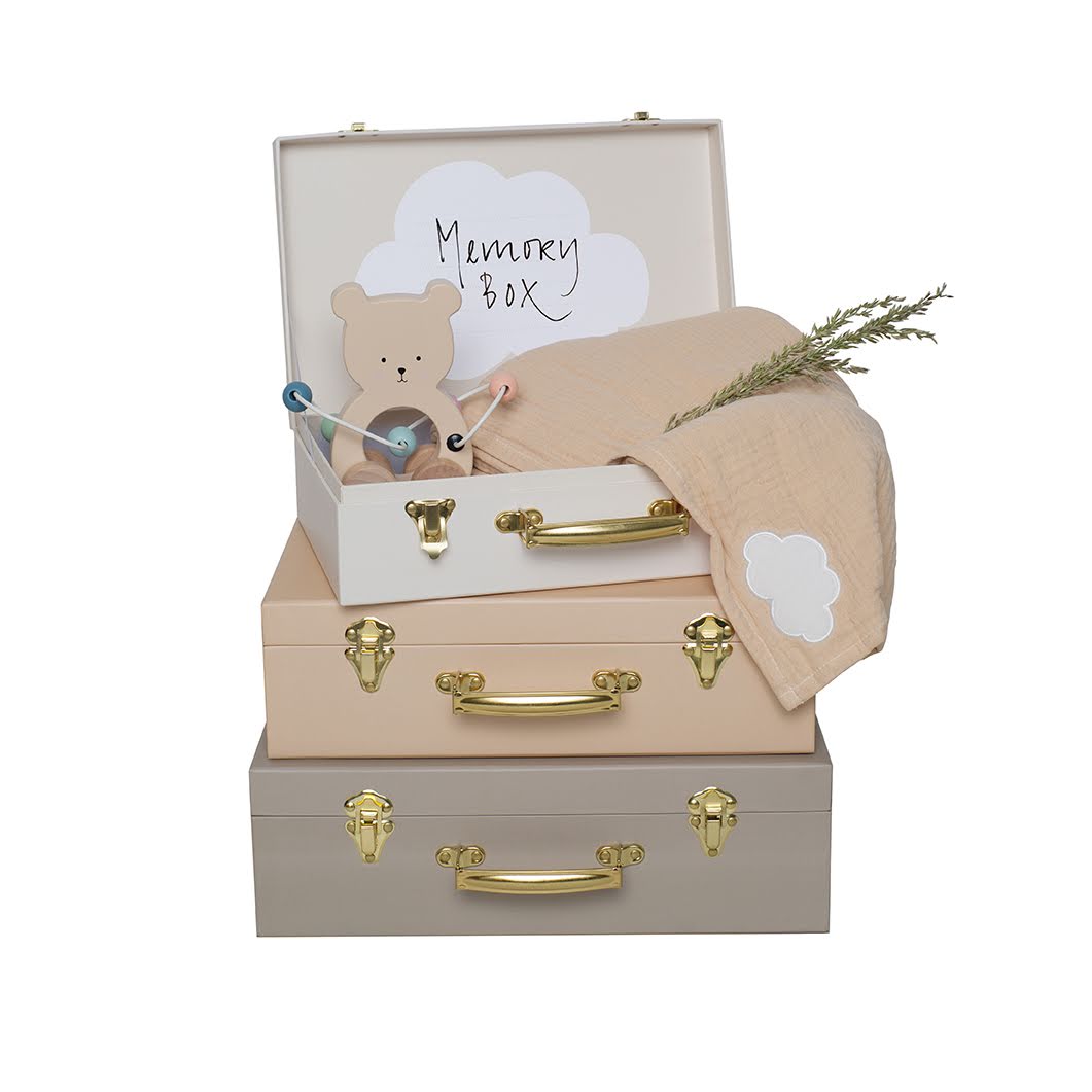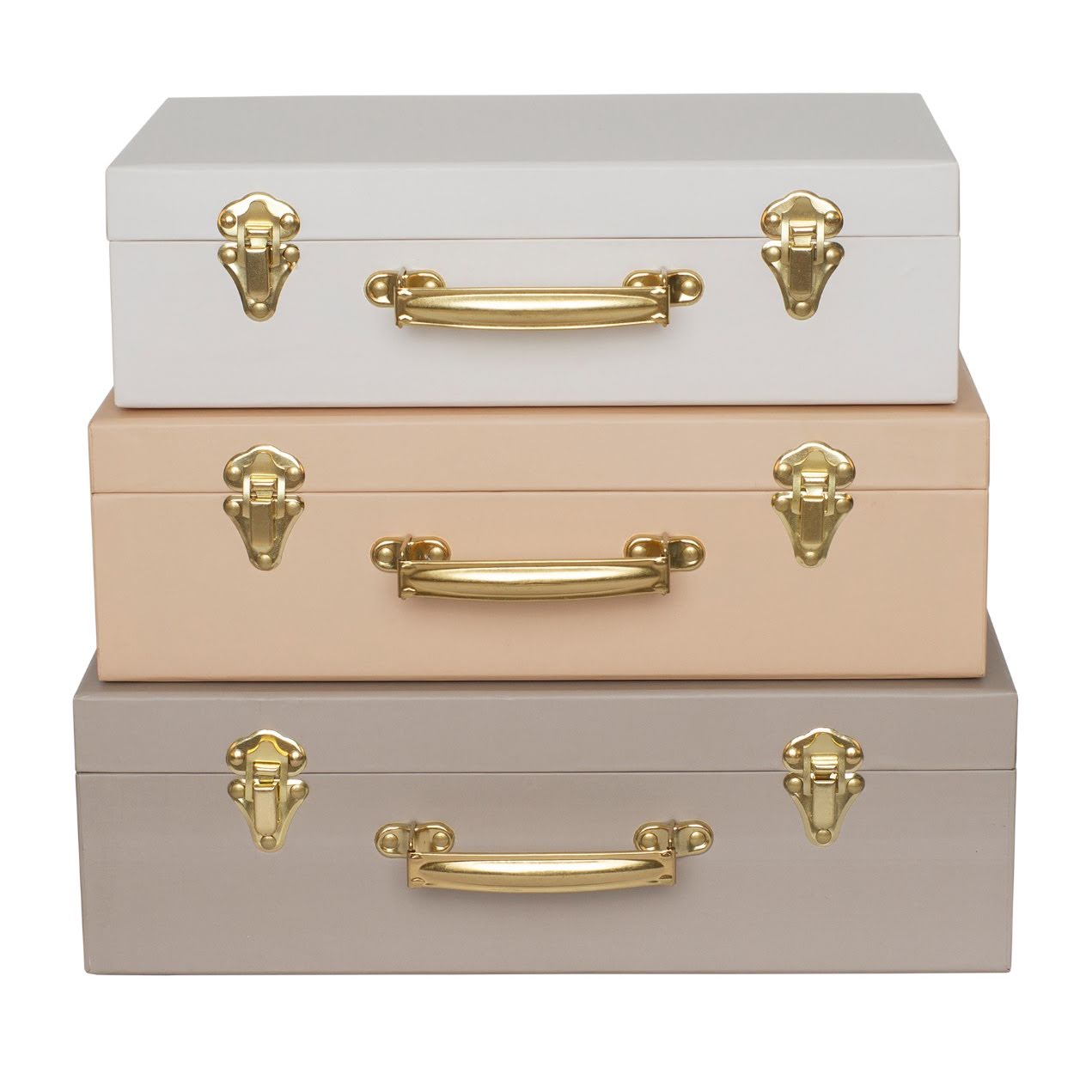 Ett underbart set av 3 st. superfina förvaringskoffertar i beige nyanser från svenska JaBaDaBaDo!