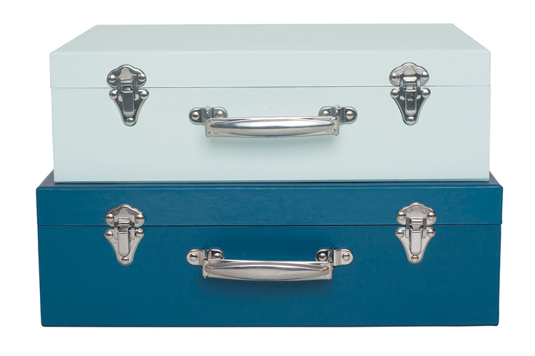 Ett underbart set av 2 st. superfina förvaringskoffertar i blåa nyanser.