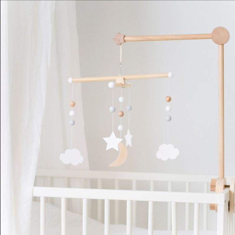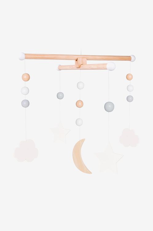 En mycket fin och elegant mobil från svenska JaBaDaBaDo och som är helt gjord av trä. Ditt barn kommer att älska att titta på på den fina månen med stjärnorna runtomkring, vilket gör ditt barn tryggt när det ska sova. Mobilens färger och mönster kommer att utveckla ditt barns sinnen och motorik under dess första månader. Så snart ditt barn kan nå mobilen bör du dock avlägsna den från sängen.