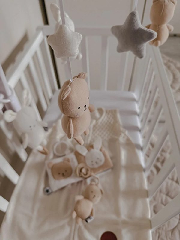 Ditt barn kommer att älska att titta på på de fina figurerna runtomkring, vilket gör ditt barn tryggt när det ska sova. Mobilens färger och mönster kommer att utveckla ditt barns sinnen och motorik under dess första månader. Så snart ditt barn kan nå mobilen bör du dock avlägsna den från sängen.