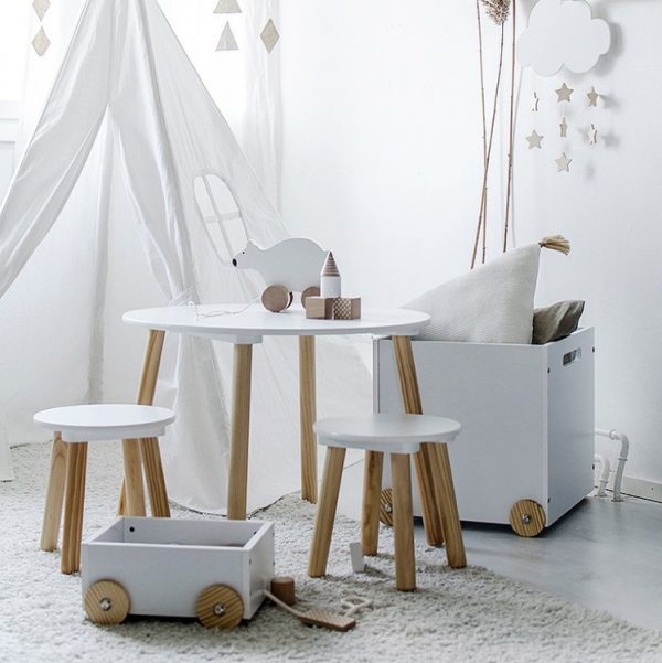 En fin och smart träpall för barnet som är mycket bekväm att sitta på. Ditt barn kommer garanterat att många bra stunder på denna stol, där det kan sitta och pyssla eller måla så snart de så önskar. Stolen är vitlackerad och ha naturfärgade ben och mycket enkelt att torka av med en fuktig trasa. Du monterar enkelt stolen för hand hemma och vi vet att du kommer hitta en bra plats för stolen i barnrummet, den smälter in i de flesta miljöer.